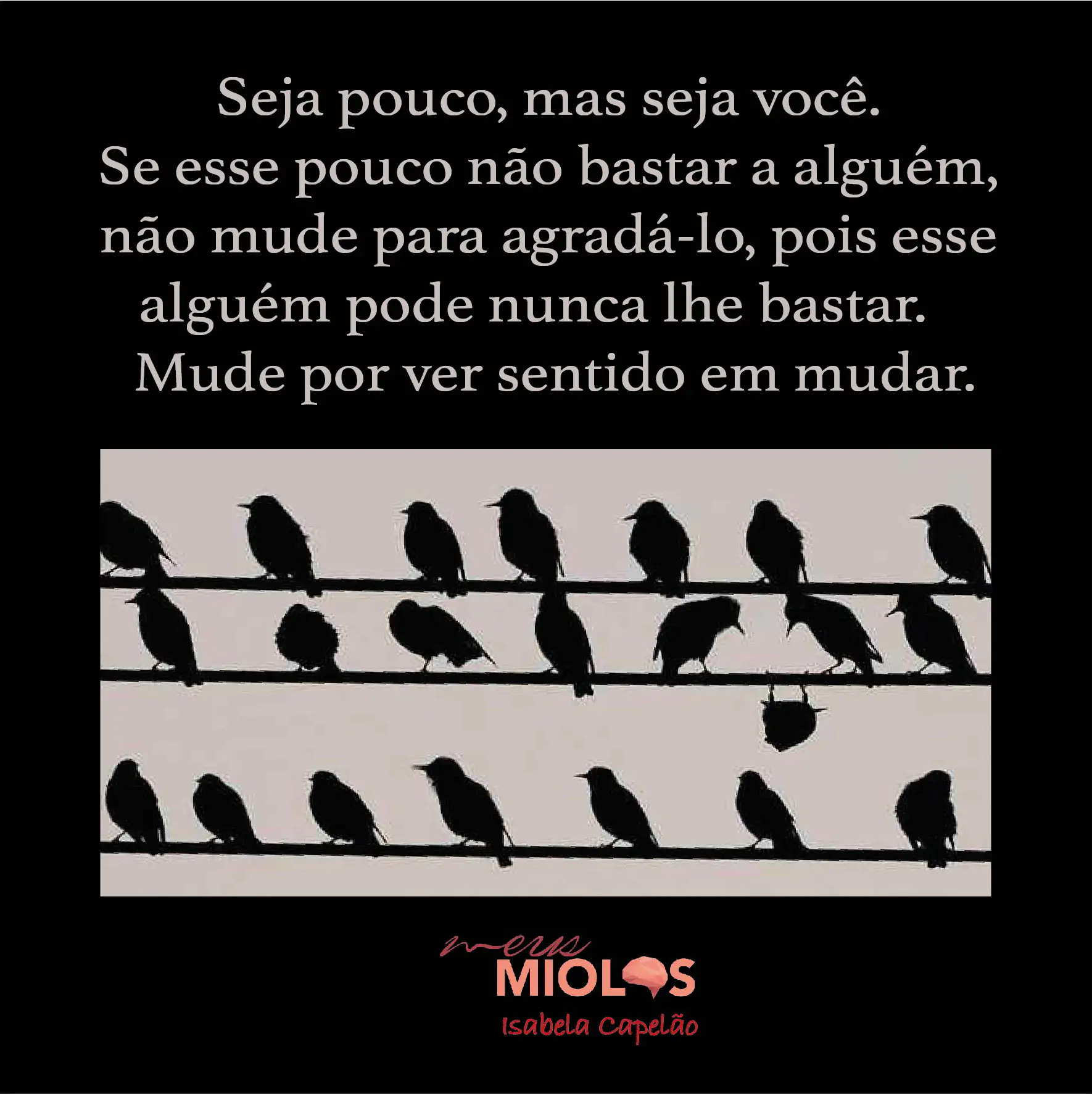 Em momentos em que me sentia tentada a agradar os outros em detrimento dos meus mais sinceros desejos, em situações em que deixava de viver a minha mais pura essência para atender às expectativas de alguns…. Esse pensamento foi um dos que mais me ajudou a ter forças para continuar e a construir uma vida honesta comigo mesma, me tornando uma pessoa mais feliz.