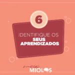IDENTIFIQUE OS SEUS APRENDIZADOS: Este é outro exercício de autoconhecimento. Aprender com o passado, reconhecer aquilo que deu errado e o que deu certo, o que você sabe e o que não sabe, identificar suas competências atuais e aquelas que serão necessárias para as conquistas futuras e valorizar as pequenas vitórias. Aprender é amadurecer e somos eternos aprendizes, estamos em constante desenvolvimento.