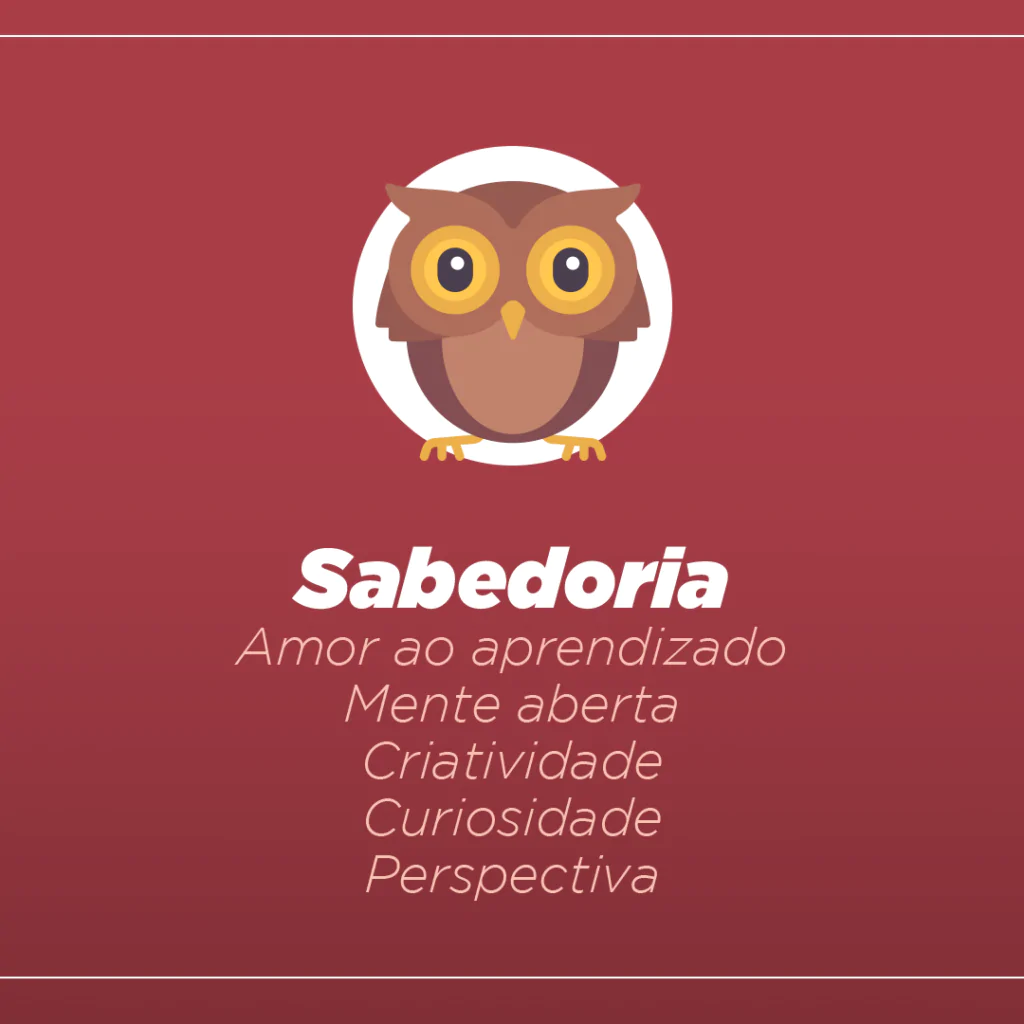 Forças: Amor ao aprendizado, Mente aberta, Criatividade, Curiosidade, Perspectiva.
