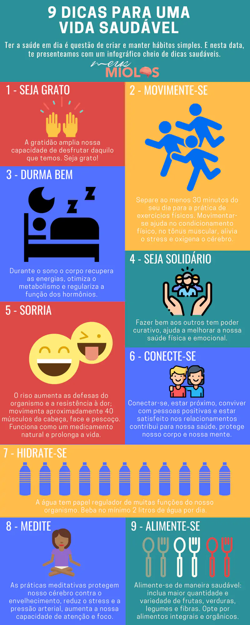 A seguir, confira algumas dicas simples e eficazes que disponibilizamos em um infográfico super informativo para te incentivar a cuidar mais da sua saúde.
