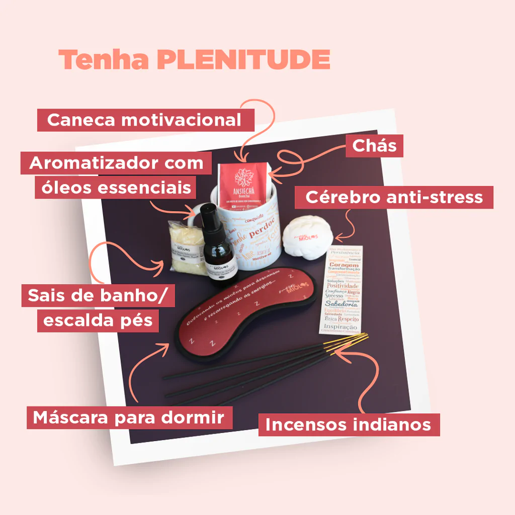 E ainda tem itens extras que você pode inserir para complementar os seus kits: a caixa em mdf forrada de tecido e bordada e o voucher de uma sessão anti-stress de relaxamento profundo (online ou presencial) ou biofeedback.